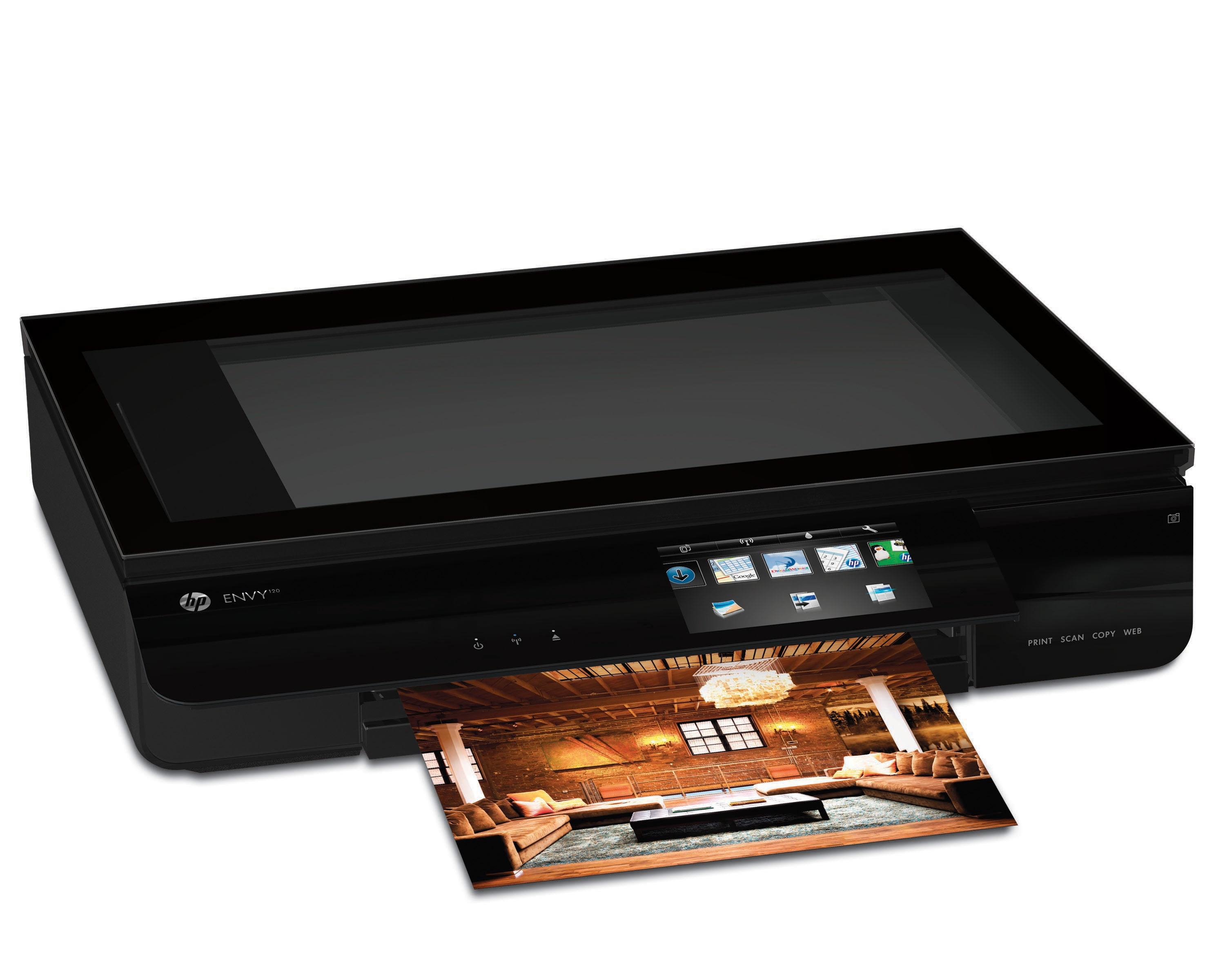 Stylish low-profile design, HP ePrint, AirPrint™, HP wireless direct printing, front USB optimised for iPhone® charging, memory card slots, HP Auto Wireless Connect, automatic two-sided printing, scan-to-email, see-through scan preview lid, high resolution 10.9 cm touchscreen with gesturing, auto-extending input/output paper trays, 4 ink printing, optional XL cartridges, whisper-quiet operation, PVC-free, ENERGY STAR® qualified